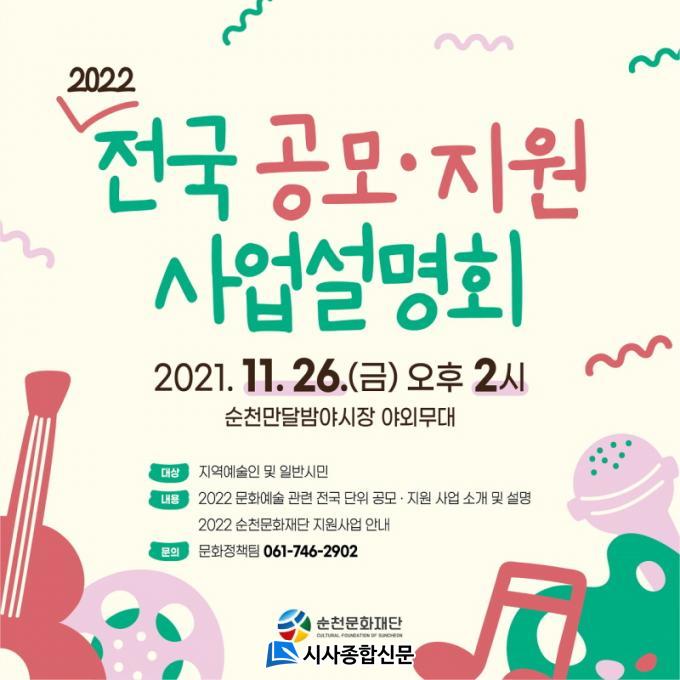 ¡®¼øÃµ¹®È¿¹¼úÀεéÀ» À§ÇÑ ¸ÂÃãÇü ¼³¸íȸ¡¯·Î ±âȹµÈ Á¦3ȸ °ø¸ð»ç¾÷ ¼³¸íȸ¿¡¼´Â °¢Á¾ ±â°üÀÇ °ø¸ð»ç¾÷ Áö¿øÀ» Èñ¸ÁÇÏ´Â Áö¿ª¹®È¿¹¼úÀεéÀ» ´ë»óÀ¸·Î 2022³â ¹®È¿¹¼ú °ü·Ã Àü±¹ °¢Á¾ °ø¸ð ¹× Áö¿ø »ç¾÷À» ¼Ò°³ÇÒ ¿¹Á¤ÀÌ´Ù.
