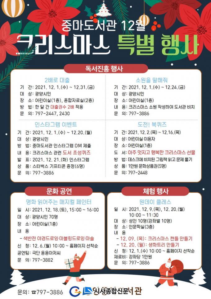 µ¶¼ ÁøÈï À̺¥Æ®´Â ¡ãÇÑ ´Þ µ¿¾È µµ¼ 2¹è ´ëÃ⠡㡸¾ÆÁÖ ¸ÚÁö°í ÇູÇÑ Å©¸®½º¸¶½º ¼±¹°¡¹ ±×¸²Ã¥À» Àаí ÄûÁî¿¡ Âü¿©ÇÏ´Â µµÀü! ºÏÄûÁî ¡ãÅ©¸®½º¸¶½º °ü·Ã µµ¼·Î ¿î¿µÇÏ´Â ÀνºÅ¸±×·¥ À̺¥Æ® ¡ãÅ©¸®½º¸¶½º ¼Ò¿øÀ» ¸»ÇØÁà µî ´Ùä·Ó°Ô ÁغñÇß´Ù.