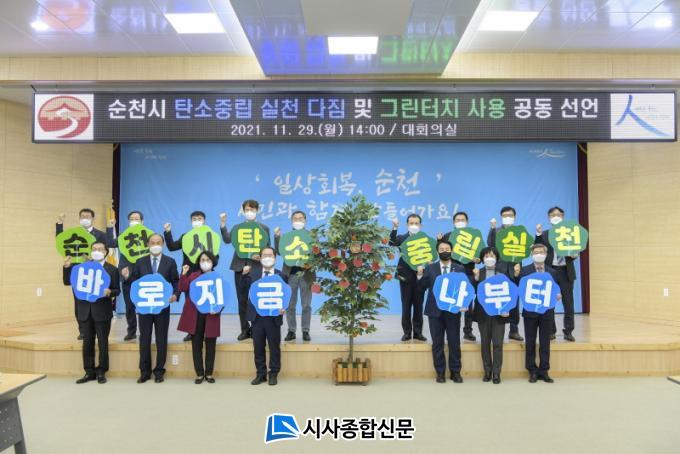 [½Ã»çÁ¾ÇսŹ® = Àå¹Î±Ô ±âÀÚ] ¼øÃµ½Ã(½ÃÀå Çã¼®)´Â 29ÀÏ ½Ãû ´ëȸÀǽǿ¡¼ °ü³» 14°³ ±â°üÀåµé°ú ÇÔ²² ź¼ÒÁ߸³ ½Çõ ´ÙÁü ¹× ±×¸°ÅÍÄ¡ »ç¿ë °øµ¿ ¼±¾ð Çà»ç¸¦ °³ÃÖÇß´Ù.