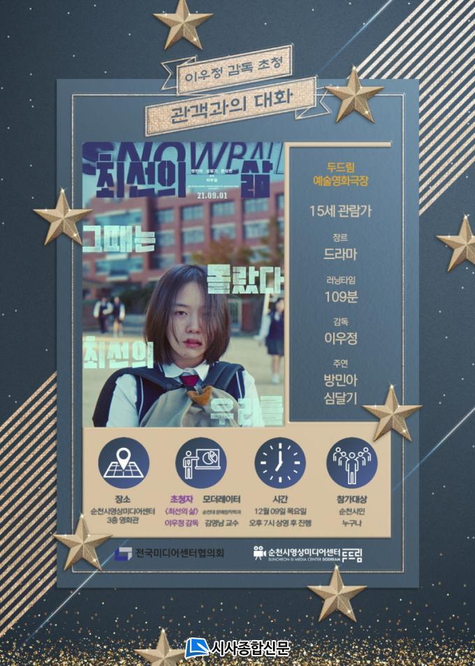 ¿µÈ »ó¿µ ÈÄ¿¡´Â ÀÓ¿ìÁ¤ °¨µ¶°ú ¿µÈ¿¡ ´ëÇØ À̾߱⸦ ³ª´©´Â °ü°´°úÀÇ ´ëȰ¡ ÁغñµÇ¾î ÀÖ´Ù. ¿µÈ¿¡ ´ëÇÑ ±Ã±ÝÇÑ Á¡°ú Á¦ÀÛ °úÁ¤¿¡ ´ëÇÑ ´Ù¾çÇÑ À̾߱⸦ ³ª´©¸ç ¼ÒÅëÇÒ ¿¹Á¤ÀÌ´Ù. ¼øÃµ´ëÇб³ ±è¿µ³² ±³¼ö°¡ ¸ð´õ·¹ÀÌÅ͸¦ ¸ÃÀ¸¸ç (»ç)Àü±¹¹Ìµð¾î¼¾ÅÍÇùÀÇȸÀÇ Áö¿øÀ¸·Î ÁøÇàµÈ´Ù.