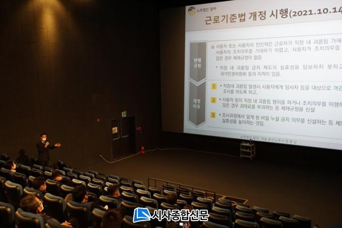 ±¤¾ç½Ã ³ë»ç¹ÎÁ¤ÇùÀÇȸ(ȸÀå Á¤Çöº¹) ÁÖ°üÀ¸·Î Áö³ 2ÀÏ ±Ù·ÎÀÚ ±ÇÀÍ º¸È£¿Í ³ë»ç°¥µî »çÀü ¿¹¹æÀ» À§ÇØ ³ë»ç ½Ç¹«ÀÚ 50¸íÀ» ´ë»óÀ¸·Î ±¤¾çCGV(±ÝÈ£µ¿ ¸ô¿Àºê±¤¾ç ³»)¿¡¼ ±³À°À» ÁøÇàÇß´Ù.