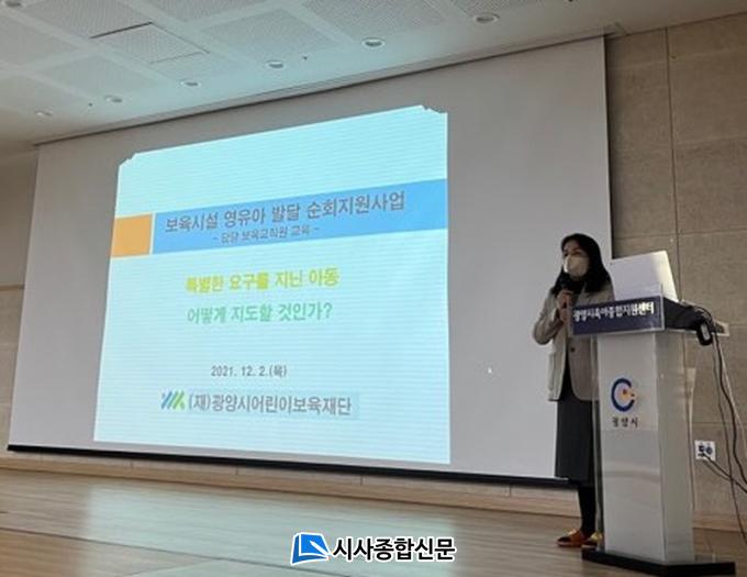 [½Ã»çÁ¾ÇսŹ® = Àå¹Î±Ô ±âÀÚ] (Àç)±¤¾ç½Ã¾î¸°À̺¸À°Àç´ÜÀº Áö³ 2ÀÏ ±¤¾ç½ÃÀ°¾ÆÁ¾ÇÕÁö¿ø¼¾ÅÍ ´ë°´ç¿¡¼ ¡®º¸À°½Ã¼³ ¿µÀ¯¾Æ ¹ß´Þ ¼øÈ¸ Áö¿ø»ç¾÷¡¯ ´ã´ç º¸À°±³Á÷¿øÀ» ´ë»óÀ¸·Î ¡®¿µÀ¯¾Æ ¹®Á¦Çൿ °ü¸® ¹× ´ëÀÀ¡¯¿¡ °üÇÑ ±³À°À» ½Ç½ÃÇß´Ù.