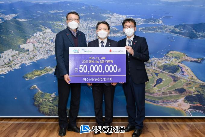 ¿©¼ö½Ã¿¡ µû¸£¸é Áö³ 3ÀÏ ¿©¼ö»ê´Ü°øÀåÀåÇùÀÇȸ ¹Ú¼ö¼º ȸÀåÀÌ ¿©¼ö½Ã¸¦ ¹æ¹®ÇØ ±Ç¿ÀºÀ ¿©¼ö½ÃÀå¿¡°Ô ÈÄ¿ø±Ý 5,000¸¸ ¿øÀ» Àü´ÞÇß´Ù.