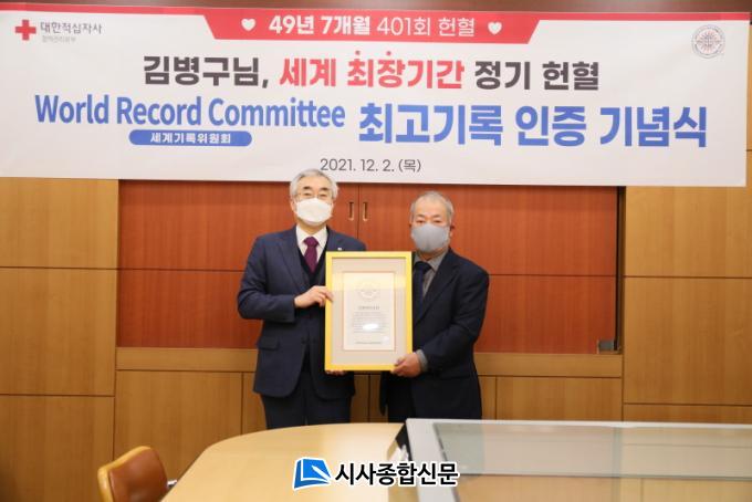 | À强±º ±èº´±¸ ¾¾, ¼¼°è ÃÖÀå±â°£ Á¤±âÀû ÇåÇ÷ ±â·Ï ÀÎÁõ 49³â 7°³¿ù µ¿¾È ÃÑ 401ȸ ÇåÇ÷¡¦ ¿ùµå·¹ÄÚµåÄ¿¹ÌƼ(WRC) ¼¼°è±â·Ï ÀÎÁõ