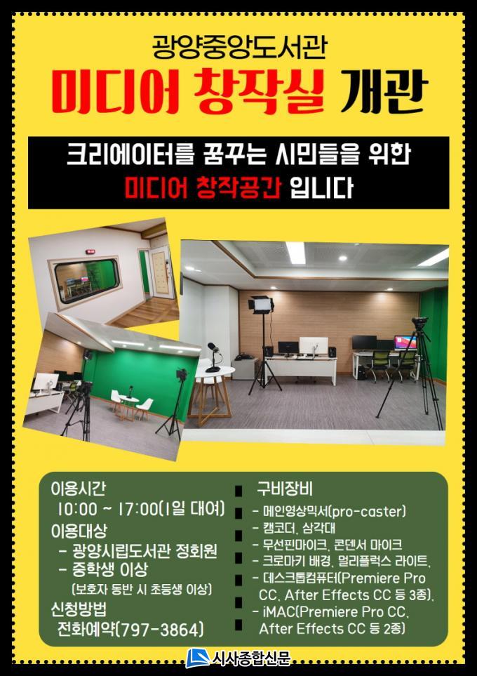 ¹Ìµð¾îâÀÛ½ÇÀº 12¿ù ½Ã¹ü ¿î¿µÀ» °ÅÃÄ ³»³â 1¿ùºÎÅÍ Àåºñ ÀÌ¿ë ±³À°°ú û¼Ò³â ÄÜÅÙÃ÷ Á¦ÀÛ Áö¿ø µî ¿©·¯ ¿¬°è ÇÁ·Î±×·¥°ú ÇÔ²² Á¤»ó ¿î¿µµÉ ¿¹Á¤À̸ç, ÀÌ¿ëÀº ±¤¾çÁß¾Óµµ¼°ü(¢Ï061-797-3864)À¸·Î ¹®ÀÇÇϸé ÀÚ¼¼È÷ ¾Ë ¼ö ÀÖ´Ù.