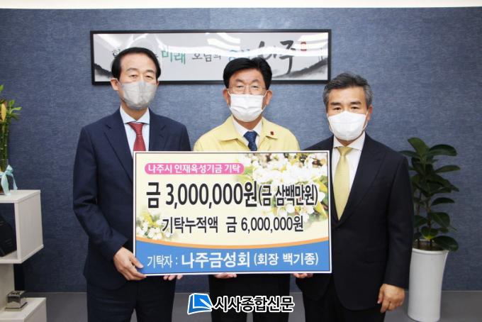 ³ªÁֽô 8ÀÏ ¡®³ªÁÖ ±Ý¼ºÈ¸¡¯¿¡¼ ÀÎÀçÀ°¼º±â±Ý 300¸¸¿øÀ» ³ªÁÖ±³À°ÁøÈïÀç´Ü¿¡ ±âŹÇß´Ù°í ¹àÇû´Ù.