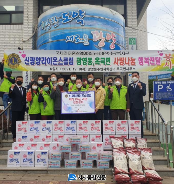 [½Ã»çÁ¾ÇսŹ® = Àå¹Î±Ô ±âÀÚ] ½Å±¤¾ç¶óÀ̿½ºÅ¬·´Àº Áö³ 9ÀÏ Áö¿ªÀÇ ¾î·Á¿î ÀÌ¿ôÀ» µ½±â À§ÇØ ±¤¿µµ¿ Áֹμ¾ÅÍ¿¡ 100¸¸ ¿ø »ó´çÀÇ ÈÄ¿ø¹°Ç°(±èÀå±èÄ¡ 11Åë, ¶ó¸é 30¹Ú½º, ½Ò 10kg 20Æ÷)À» Àü´ÞÇß´Ù.