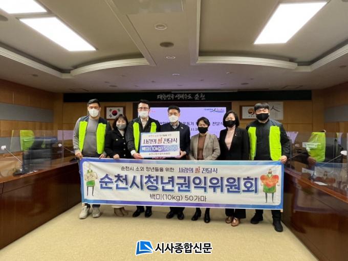 [½Ã»çÁ¾ÇսŹ® = Àå¹Î±Ô ±âÀÚ] ¼øÃµ½Ãû³â±ÇÀÍÀ§¿øÈ¸(ȸÀå ÁÖÄ¡ÈÆ)°¡ Áö³ 9ÀÏ ¿¬¸»À» ¸ÂÀÌÇÏ¿© ÀÌ¿ô»ç¶û ½Çõ¿¡ µ¿ÂüÇϰíÀÚ ¼øÃµ½Ã¿¡ ½Ò 50Æ÷(10kg)¸¦ ±âŹÇß´Ù.