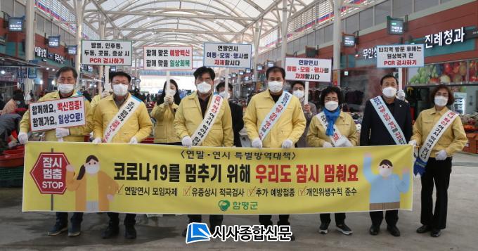 ÇÑÆí, ÇÔÆò±ºÀº À̳¯ ¿ÀÀü ÇÔÆòõÁöÀüÅë½ÃÀå ÀÏ¿ø¿¡¼ Äڷγª19 È®»ê ¹æÁö¸¦ À§ÇÑ ¡®¿¬¸»¿¬½Ã À̵¿‧¸ðÀÓ‧Çà»ç ÀÚÁ¦¡¯ Ä·ÆäÀÎÀ» °³ÃÖÇß´Ù. Ä·ÆäÀο¡´Â ÀÌ»óÀÍ ÇÔÆò±º¼ö, ±èÇü¸ð ÇÔÆò±ºÀÇȸ ÀÇÀåÀ» ºñ·ÔÇÑ 10¿© ¸íÀÌ Âü¿©ÇØ À峯À» ¸ÂÀº ÀüÅë½ÃÀå°ú »ó°¡¿¡¼ ÁøÇàµÆ´Ù.