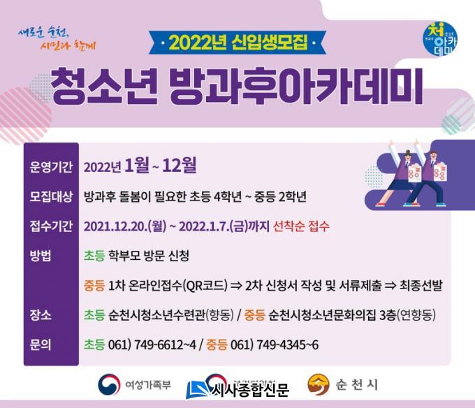 ¸ðÁý´ë»óÀº °ü³» ÃʵîÇб³ 4~6Çгâ 40¸í(û¼Ò³â¼ö·Ã°ü), ÁßÇб³ 1~2Çгâ(û¼Ò³â¹®ÈÀÇÁý)ÀÌ ÇØ´çµÇ¸ç, ¿î¿µ ±â°£Àº 2022³â 1¿ùºÎÅÍ 12¿ù±îÁö 1³â°£ ¿î¿µÇÑ´Ù.
