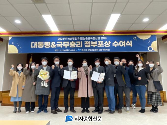 ¼Û°æÈ¯ ¼¾ÅÍÀå°ú ´õºÒ¾î ¿©¼ö °Å¹®µµÇØÇ³¾¦¿µ³ó¹ýÀÎ ³²ÁÖÇö ´ëÇ¥´Â ´ëÅë·É ǥâÀ», Àü³²³óÃÌÀ¶º¹ÇÕ»ê¾÷Áö¿ø¼¾ÅÍ ±è´ÙÇý º»ºÎÀå°ú ¿©¼ö ³ó¾÷ȸ»ç¹ýÀÎ ÇâÀ¯¹Ì°¡¢ß ÇÑÇØ°æ ´ëÇ¥´Â Àå°ü ǥâÀ» ¼ö»óÇÏ¿´´Ù.