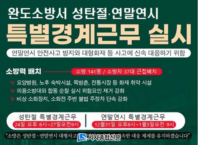 ¼ºÅºÀý ±â°£ 24ÀϺÎÅÍ 27ÀϱîÁö 3Àϰ£, ¿¬¸»¿¬½Ã ±â°£ 12¿ù 31ÀϺÎÅÍ ´ÙÀ½ÇØ 1¿ù 3ÀϱîÁö Ưº°°æ°è±Ù¹« ±â°£À¸·Î Á¤Çϰí, Àοø 798¸í(¼Ò¹æ°ø¹«¿ø 141, Àǹ«¼Ò¹æ¿ø 3, ÀÇ¿ë¼Ò¹æ´ë¿ø 654) ¼Ò¹æÀåºñ 37´ë µî °¡¿ë ¼Ò¹æ·ÂÀ» 100% µ¿¿øÇÏ¿© Ãʱâ´ëÀÀü°è¸¦ °ÈÇÑ´Ù.