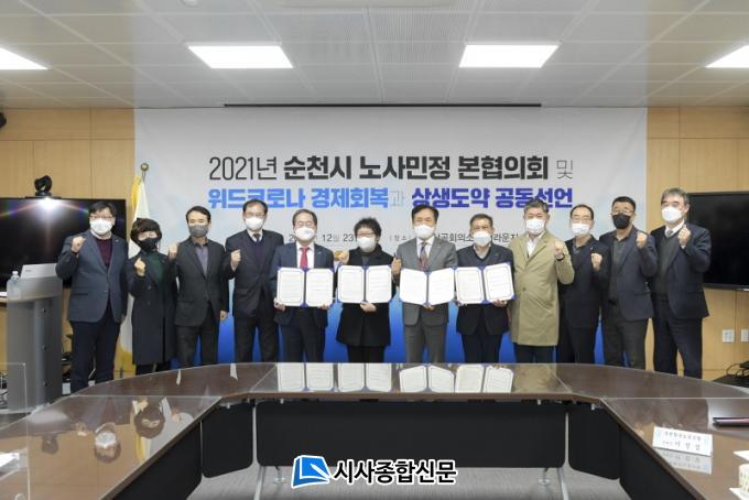 °øµ¿¼±¾ð¿¡´Â ¼øÃµ½Ã, ½ÃÀÇȸ, ³ëµ¿°è, °æ¿µ°è, ½Ã¹Î´Üü ´ëÇ¥ µî ³ë»ç¹ÎÁ¤ ´ëÇ¥µéÀÌ Âü¼®ÇÏ¿´À¸¸ç, °øµ¿¼±¾ð¹®¿¡´Â ¡ã¹ü ½Ã¹Î³ª´®¿îµ¿ÀÎ ¡®¼øÃµÇü ±ÇºÐ(ÏèÝÂ) ¿îµ¿¡¯È®»ê ¡ã¼Ò»ó°øÀεéÀ» À§ÇÑ Áö¿ª ³» ¼Òºñ Àû±Ø Çù·Â ¡ãÀüÅë½ÃÀå Ȱ¼ºÈ ¹× »çȸÀû °æÁ¦±â¾÷ Á¦Ç° ±¸¸Å ¡ãÁß¼Ò±â¾÷ µî Áö¿ª ±â¾÷ ¾ÈÁ¤Àû ¼ºÀå Ãß±¸ ¡ã°øµ¿¼±¾ðÀÇ ±¸Ã¼Àû ½ÇõÀ» À§ÇÑ ÀÌÇࡤÁ¡°Ë´Ü ±¸¼º ¹× ¿î¿µ µîÀÇ ³»¿ëÀÌ ´ã°å´Ù.