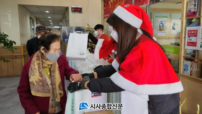 Å©¸®½º¸¶½º¸¦ ¸ÂÀÌÇØ º¹Áö°ü ÀÓÁ÷¿øµé ¸ðµÎ »êŸ¿Í ·çµ¹ÇÁ º¹ÀåÀ» Çϰí 160¿© ¸íÀÇ Áö¿ª Áֹΰú º¹Áö°ü ÀÌ¿ë ¾î¸£½Åµé¿¡°Ô ´ÞÄÞÇÏ°í ºÎµå·¯¿î ¡®·ÑÄÉÀÌÅ©¡¯¸¦ Àü´ÞÇß´Ù.