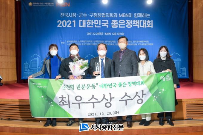 Àü±¹½ÃÀ屺¼ö±¸Ã»ÀåÇùÀÇȸ¿Í MBNÀÌ °øµ¿ÁÖ°üÇÏ¿© °³ÃÖÇÑ ¡®´ëÇѹα¹ ÁÁÀº Á¤Ã¥´ëȸ¡¯¿¡´Â Àü±¹ ±âÃÊÁöÀÚü·ÎºÎÅÍ 268°ÇÀÇ Á¤Ã¥ÀÌ Á¢¼öµÇ¾î, 1Â÷ ¿ÜºÎ ½É»ç, 2Â÷ PT¹ßÇ¥ ½É»ç, 3Â÷ ±¹¹Î ½É»ç¸¦ ÅëÇØ 20°ÇÀÇ ¿ì¼ö »ç·Ê°¡ ¼±Á¤µÆ´Ù. ÀÌ Áß ¡®¼øÃµÇü ±ÇºÐ¿îµ¿¡¯Àº ÃÖ¿ì¼ö»óÀÇ ¿µ¿¹¸¦ ¾È¾Ò´Ù.