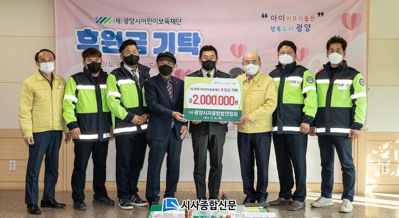 ±âŹ½Ä¿¡´Â (»ç)±¤¾ç½ÃÀÚÀ²¹æ¹ü¿¬ÇÕȸ(ȸÀå ½Å¿í¹è, ¼ö¼® ºÎȸÀå ±èÇüÀÏ, À¾³»±Ç ºÎȸÀå Á¤±¤Ã¶, È«º¸ÀÌ»ç ±èÁ¾ÁÖ, »ç¹«±¹Àå ¼±ÁøÈÆ)¿¡¼ 2¹é¸¸ ¿øÀÇ ¼ÒÁßÇÑ ÈÄ¿ø±ÝÀ» Àü´ÞÇß´Ù.