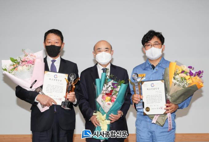 Á¶¼ºÅ °úÀåÀº ¡°30³â°£ ±â°èÁ¤ºñÁ÷À¸·Î ¹¬¹¬È÷ ÁÖ¾îÁø ¾÷¹«¸¦ ¿½ÉÈ÷ ÇßÀ» »ÓÀε¥ ÀÌ·± Å« »óÀ» ¹Þ°Ô µÇ¾î ±â»Ú±âµµ ÇÏÁö¸¸ ÇÑÆíÀ¸·Î´Â ´õ ¿½ÉÈ÷ ÇØ¾ß°Ú´Ù´Â Ã¥ÀÓ°¨¿¡ ¾î±ú°¡ ¹«°Ì´Ù¡±¸ç, ¡°±×µ¿¾È ÇÔ²²Çؿ ȸ»ç µ¿·áµé°ú »ç¶ûÇÏ´Â °¡Á·µé²² °í¸¿°í °¨»çÇÏ´Ù¡±°í ¼Ò°¨À» ÀüÇß´Ù.