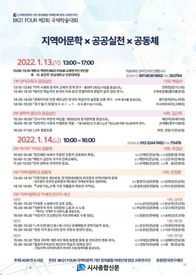 [½Ã»çÁ¾ÇսŹ® = ¿À½ÂÅà ±âÀÚ] Àü³²´ëÇб³ BK21 FOUR Áö¿ª¾î¹®ÇÐ ±â¹Ý âÀÇÀ¶ÇÕ ¹Ì·¡ÀÎÀç ¾ç¼º ±³À°¿¬±¸´Ü(ÀÌÇÏ ±¹¾î±¹¹®Çаú BK21)ÀÌ 1¿ù 13~14ÀÏ ÀÌÆ² µ¿¾È °øµ¿Ã¼¿¡¼ÀÇ Áö¿ª¾î¹®ÇÐÀÇ ¿ªÇÒ°ú °ø°ø½ÇõÀû Ãø¸éÀ» Á¶¸ÁÇØ º¸´Â Á¦2ȸ ±¹Á¦Çмú´ëȸ¸¦ ¿Â¶óÀÎ(ZOOM)¿¡¼ °¡Áø´Ù.
