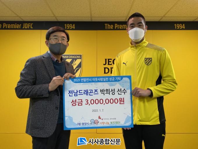 ¹ÚÈñ¼ºÀº Àü³²µå·¡°ïÁî°¡ 14³â ¸¸¿¡ ¿ì½Â Æ®·ÎÇǸ¦ µé¾î¿Ã¸° ¡®2021 ÇϳªÀºÇà FAÄÅ¡¯¿¡¼ 4°ñÀ» ±â·ÏÇÏ¸ç µæÁ¡¿Õ¿¡ ¿Ã¶ú´Ù. ¹ÚÈñ¼ºÀº µæÁ¡¿Õ »ó±ÝÀ¸·Î ¹ÞÀº 300¸¸¿ø Àü¾×À» ¿¬¸»¿¬½Ã Áö¿ªÀÇ ¾î·Á¿î ÀÌ¿ôµéÀ» µ½±â À§ÇØ ÈÄ¿ø ±âŹÇϱâ·Î °áÁ¤Çß´Ù.