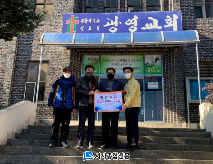 [½Ã»çÁ¾ÇսŹ® = Àå¹Î±Ô ±âÀÚ] ±¤¾ç½Ã ±¤¿µµ¿ ±¤¿µ±³È¸´Â Áö³ 11ÀÏ »õÇØ¸¦ ¸Â¾Æ ¾î·Á¿î ÀÌ¿ôÀ» µ½±â À§ÇØ ¼º±Ý 200¸¸ ¿øÀ» ±¤¿µµ¿ Áֹμ¾ÅÍ¿¡ ±âŹÇß´Ù.