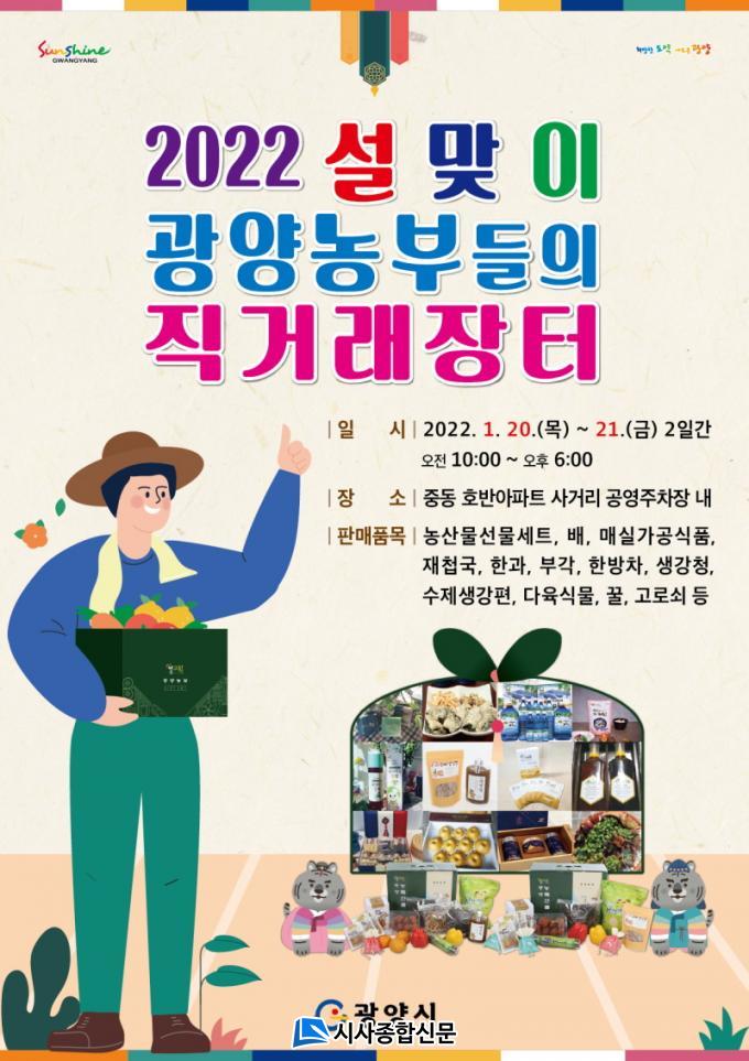 [½Ã»çÁ¾ÇսŹ® = Àå¹Î±Ô ±âÀÚ] ±¤¾ç½Ã´Â 2022³â ¼³¸íÀýÀ» ¸Â¾Æ ¿À´Â 1¿ù 20ÀϺÎÅÍ ÀÌÆ²°£ ±¤¾ç¿¡¼ »ý»êµÇ´Â ¿ì¼ö ³óƯ»ê¹°À» ¾ÈÀüÇÏ°Ô ±¸ÀÔÇÒ ¼ö ÀÖ´Â ¡®¼³¸ÂÀÌ ±¤¾ç³óºÎµéÀÇ Á÷°Å·¡ÀåÅÍ¡¯¸¦ ¿î¿µÇÑ´Ù.