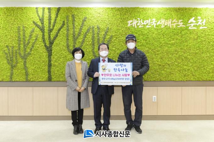 [½Ã»çÁ¾ÇսŹ® = Àå¹Î±Ô ±âÀÚ] (»ç)Àü±¹ÇÑ¿ìÇùȸ ¼øÃµ½ÃÁöºÎ(ÁöºÎÀå ¹Ú°Ç¼®)¿Í ±¹Á¦À§·¯ºêÀ¯¿îµ¿º»ºÎ Àü³²µ¿ºÎ¿¬ÇÕȸ(ÁöºÎÀå º¯°ü¿õ)´Â Áö³ 24ÀÏ ¼³ ¸íÀýÀ» ¾ÕµÎ°í »çȸº¹Áö½Ã¼³ ¹× ¾î·Á¿î ÀÌ¿ô¿¡ Àü´ÞÇØ´Þ¶ó¸ç ÇÑ¿ìºÒ°í±â 70kg(250¸¸¿ø »ó´ç)°ú ÀÌºÒ 25ä(150¸¸¿ø »ó´ç)¸¦ °¢°¢ ¼øÃµ½Ã¿¡ ±âŹÇß´Ù.