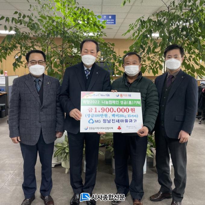 [½Ã»çÁ¾ÇսŹ® = ¿À½ÂÅà ±âÀÚ] ÀåÈﱺ Á¤³²Áø»õ¸¶À»±Ý°í(ÀÌ»çÀå ÇÑ¿ëÇö)´Â ¡®»ç¶ûÀÇ Á»µµ¸® ¿îµ¿¡¯À» ÅëÇØ ¼º±Ý 100¸¸¿ø°ú ½Ò 300kg(90¸¸¿ø »ó´ç)À» ÀåÈïÀ¾ Áö¿ª»çȸº¸ÀåÇùÀÇü(°øµ¿À§¿øÀå ±æÇöÁ¾, °°æÀÏ)¿¡ ±âŹÇß´Ù.