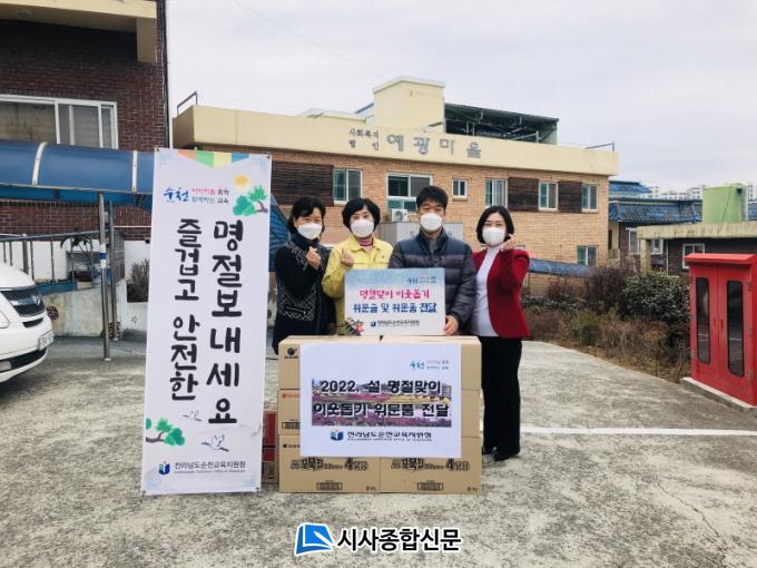 [½Ã»çÁ¾ÇսŹ® = Àå¹Î±Ô ±âÀÚ] ¼øÃµ±³À°Áö¿øÃ»(±³À°Àå ÀÌ¿ë´ö)Àº ¼³ ¸íÀýÀ» ¸Â¾Æ ÀÌ¿ô°ú ÇÔ²² ÇÏ´Â µû¶æÇÑ ¸íÀý ºÐÀ§±â Á¶¼ºÀ» À§ÇØ 25Àϰú 27ÀÏ ÀÌÆ²°£ »çȸº¹Áö½Ã¼³À» ¹æ¹®ÇØ À§¹®±Ý°ú À§¹®¹°Ç°À» Àü´ÞÇϰí, °ü³» Çб³ Çлý°¡Àå ¹× °¡Á¤À§Å¹Çлý 46¸í¿¡°Ô ºñ´ë¸é Åùè¹è¼ÛÀ» ÅëÇØ ¼ÒÁ¤ÀÇ Çö¹°À» Àü´ÞÇÏ¿´´Ù.