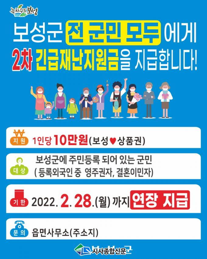 º¸¼º±ºÀº Äڷγª19 Àå±âÈ·Î ÀÏ»ó»ýȰ¿¡ Á¦¾àÀ» ¹Þ´Â ±º¹ÎµéÀ» À§·ÎÇϰí ħüµÈ Áö¿ª°æÁ¦¸¦ Ȱ¼ºÈ½Ã۱â À§ÇØ ½ÃÀÛÇÑ ¡®2Â÷ ±ä±ÞÀç³Áö¿ø±Ý¡¯ÀÌ ÃÖ´ëÇÑ ¸¹Àº ±º¹Î¿¡°Ô Áö±ÞÇØ¾ß ÇÑ´Ù´Â ÃëÁö¿¡¼ Áö±Þ±â°£À» ÇÑ ´Þ ¿¬ÀåÇß´Ù.
