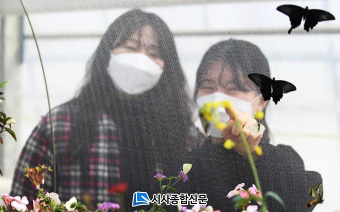 [½Ã»çÁ¾ÇսŹ®] º½ÀÇ ½ÃÀÛÀ» ¾Ë¸®´Â ÀÔÃá(Ø¡õð)ÀÎ 4ÀÏ ¿À´Ã, Àü³² ÇÔÆò±º³ó¾÷±â¼ú¼¾ÅÍ ¿Â½ÇÀ» ãÀº ¹æ¹®°´µéÀÌ º½À» ¾Ë¸®´Â ³ªºñµéÀÇ ÈûÂù ³¯°¹ÁþÀ» ¹Ù¶óº¸°í ÀÖ´Ù.