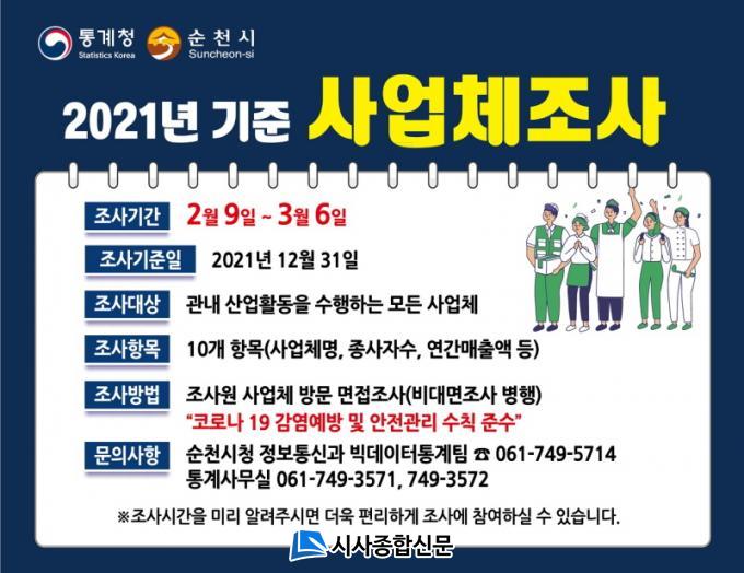Á¶»ç´ë»óÀº ¼øÃµ½Ã¿¡¼ »ê¾÷ Ȱµ¿À» Çϰí ÀÖ´Â Á¾»çÀÚ 1ÀÎ ÀÌ»óÀÇ ¸ðµç »ç¾÷ü·Î ¾à 34,661°÷ÀÌ´Ù. Á¶»çÇ׸ñÀº ÃÑ 10°³·Î »ç¾÷ü¸í, Á¾»çÀÚ ¼ö, ¿¬°£ ¸ÅÃâ¾× µîÀÌ Æ÷ÇԵǾú°í, ¿ÃÇØ Á¶»ç¿¡´Â »ç¾÷Àå ¿î¿µÀå¼Ò, ¹ýÀθí 2°³ Ç׸ñÀÌ »õ·Ó°Ô Ãß°¡µÆ´Ù.