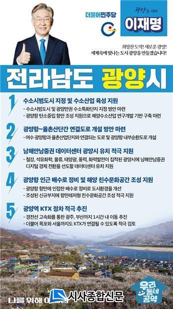ÀÌÀç¸í Èĺ¸ÀÇ ±¤¾ç½Ã ´ë¼± °ø¾àÀº Áö¿ª±¸ ±¹È¸ÀÇ¿øÀÎ ¼µ¿¿ë ÀÇ¿ø°ú »çÀü¿¡ ÃæºÐÇÑ ÇùÀǸ¦ °ÅÃÄ ¸¶·ÃµÇ¾ú´Ù. À̸¦ À§ÇØ ¼µ¿¿ë ÀÇ¿øÀº Àü¶ó³²µµ µî°ú Áö¼ÓÀûÀ¸·Î ÇùÀǸ¦ ÁøÇàÇÏ´Â µî ±¤¾ç½Ã ¹ßÀüÀ» À§ÇÑ ºñÀü¿¡ ±â¹ÝÇÑ Áß¿ä»ç¾÷À» ¿ì¼±ÀûÀ¸·Î °ø¾à¿¡ ¹Ý¿µÇß´Ù.