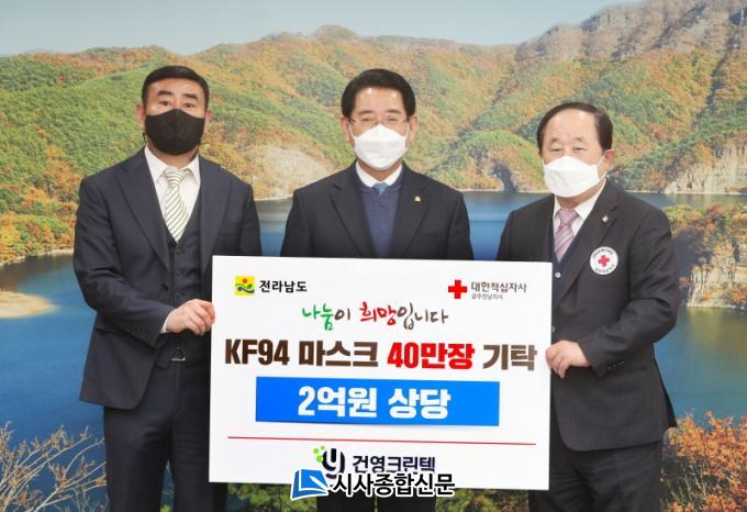 [½Ã»çÁ¾ÇսŹ® = ¿À½ÂÅà ±âÀÚ] Àü¶ó³²µµ´Â (À¯)°Ç¿µÅ©¸°ÅØÀÌ 2¾ï ¿ø »ó´çÀÇ KF94 ¸¶½ºÅ© 40¸¸ ÀåÀ» µµ³» Ãë¾à°èÃþ, º¸°Ç½Ã¼³, ¼Ò»ó°øÀÎ µî¿¡°Ô Àü´ÞÇϵµ·Ï ´ëÇÑÀû½ÊÀÚ»ç ±¤ÁÖÀü³²Áö»ç¿¡ ±âŹÇß´Ù°í 17ÀÏ ¹àÇû´Ù.