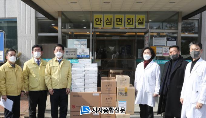 À̹ø ÇöÀå ¹æ¹®Àº µµ³» ¿ä¾çº´¿ø µî Äڷγª19 °¨¿° Ãë¾à½Ã¼³¿¡¼ È®ÁøÀÚ°¡ ¸¹ÀÌ ¹ß»ýÇѵ¥ µû¸¥ °ÍÀÌ´Ù. Àü³²µµ´Â È®ÁøÀÚ ¹ß»ý ÇöȲÀ» º¸°í¹ÞÀº ÈÄ º´¿øÀ» µÑ·¯º¸¸é¼ ¹æ¿ª°ü¸® °È Áؼö»çÇ× µîÀ» Á¡°ËÇß´Ù. ÀÌ¿Í ÇÔ²² º¸È£º¹, ¸¶½ºÅ© µî ¹æ¿ª¹°Ç°À» Àü´ÞÇϰí, ¾î·Á¿î »óȲ¿¡¼ °í»ýÇÏ´Â ÀÇ·áÁøÀ» À§·ÎÇß´Ù.