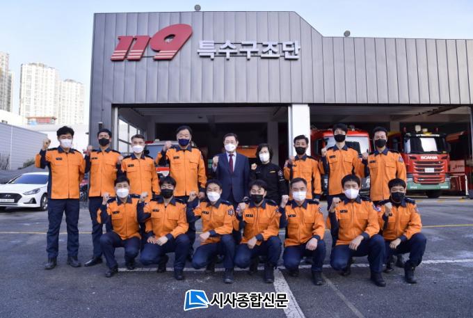 [½Ã»çÁ¾ÇսŹ® = ¿À½ÂÅà ±âÀÚ] À̿뼷 ±¤ÁÖ±¤¿ª½ÃÀåÀÌ 17ÀÏ ¿ÀÈÄ ±¤»ê±¸ 119Ư¼ö±¸Á¶´ÜÀ» ¹æ¹®ÇØ Çö´ë»ê¾÷°³¹ß ¾ÆÆÄÆ® ½ÅÃà°ø»ç ºØ±«»ç°í ½ÇÁ¾ÀÚ ¼ö»ö¡¤±¸Á¶ ÀÓ¹«¿¡ Âü¿©ÇÑ ¼Ò¹æ°üµéÀ» °Ý·ÁÇϰí ÀÖ´Ù