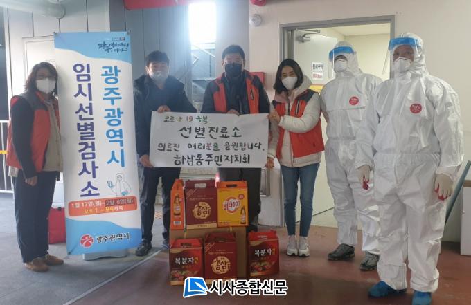 [½Ã»çÁ¾ÇսŹ® = ¿À½ÂÅà ±âÀÚ] ±¤Áֽà ±¤»ê±¸ Çϳ²µ¿ ÁÖ¹ÎÀÚġȸ(ȸÀå ¹ÚÇå±â)°¡ Áö³ 17ÀÏ Çϳ²3Áö±¸ ÁÖÂ÷Ÿ¿ö¿¡ ¼³Ä¡µÈ Àӽà ¼±º°Áø·á¼Ò¸¦ ¹æ¹®ÇÏ¿© ÃßÀ§¿¡ °í»ýÇÏ´Â ÀÇ·áÁø, ÇöÀåÁ¾»çÀÚ¿¡°Ô °¨»ç¿Í ÀÀ¿øÀÇ ¸¶À½À» ´ã¾Æ ÇÖÆÑ°ú ÇÇ·Îȸº¹À½·á µîÀ» Àü´ÞÇÏ¿´´Ù.