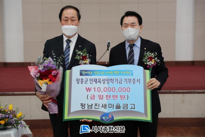 À̳¯ Á¤³²Áø»õ¸¶À»±Ý°í ÃÑȸ¿¡¼´Â ÀåÈﱺÀÎÀçÀ°¼ºÀåÇÐȸ»Ó¸¸ ¾Æ´Ï¶ó û¿îÀåÇÐȸ, ´ë´öÀåÇÐȸ, ºÎ¿ëÀåÇÐȸ, ¾È¾çÀåÇÐȸ, ȸÁøÀåÇÐȸ¿¡µµ °¢ 1¹é¸¸¿øÀ» ±âŹÇß´Ù. ¿©±â¿¡ ÀÚüÀûÀ¸·Î ¼±¹ßÇÑ ÀåÇлý 10¸í¿¡°Ô ÀåÇбÝÀ» Àü´ÞÇß´Ù.