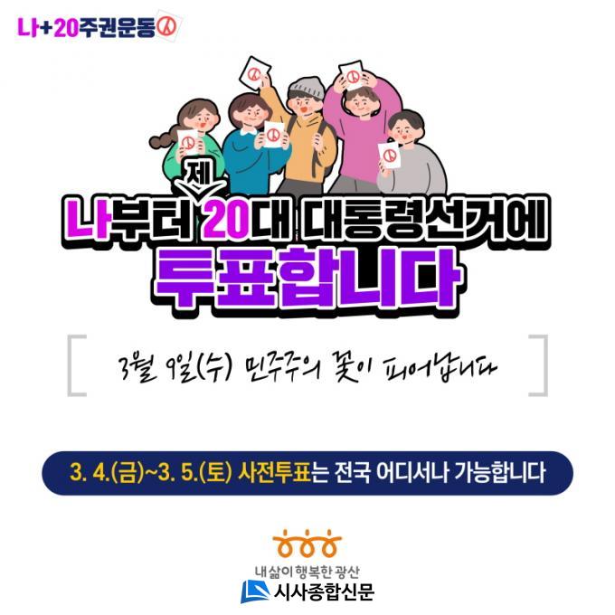 ¿ì¼± ¼±°Å¿¡ ´ëÇÑ °ü½É°ú Âü¿© ºÐÀ§±â¸¦ Á¶¼ºÇϱâ À§ÇØ ¡®³ª+20 Áֱǿ¡¯ ÅõÇ¥ Âü¿© Ä·ÆäÀÎÀ» ¹úÀ̰í ÀÖ´Ù.