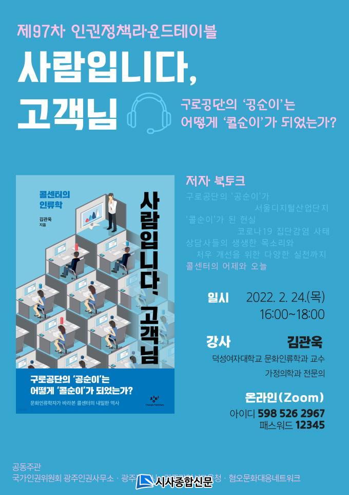 ÇÑÆí, Á¦97Â÷¸¦ ¸Â´Â ÀαÇÁ¤Ã¥¶ó¿îµåÅ×À̺íÀº ½Ã±³À°Ã», ½Ãû, ±¤ÁÖÀαǻ繫¼Ò, Çø¿À´ëÀÀ³×Æ®¿öÅ©°¡ °øµ¿À¸·Î ¿î¿µÇÑ´Ù. ÁÖ¿ä À뱂 ÀÇÁ¦³ª Çö¾È¿¡ ´ëÇØ ÇнÀÇϰí Åä·ÐÇÏ´Â °ø·ÐÀÇ ÀåÀ¸·Î °Ý¿ù·Î 1ȸ °³ÃֵȴÙ.
