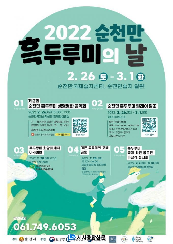 À̹ø Çà»ç¿¡´Â ¡ã2¿ù 26ÀÏ ¿ÀÈÄ 3½Ã ¼øÃµ¸¸±¹Á¦½ÀÁö¼¾ÅÍ ÀÔü¿µ»ó°ü¿¡¼ Á¦2ȸ ¼øÃµ¸¸ ÈæµÎ·ç¹Ì »ý¸íÆòÈ À½¾Çȸ°¡ ¿¸®°í, ¼øÃµ¸¸½ÀÁö ÀÏ¿ø¿¡¼ ¡ã2¿ù 26ÀϺÎÅÍ 3¿ù 1ÀϱîÁö ¼øÃµ¸¸ ÈæµÎ·ç¹Ì ¸±·¹ÀÌ Å½Á¶ Åõ¾î, ¡ã2¿ù 28ÀÏ ¿ÀÈÄ 3½Ã ¡®°Å¹È µÎ·ç¹ÌÀÇ °í¹é¡¯ °ø¿¬, ¡ãÈæµÎ·ç¹Ì ±¹Á¦ »çÁø °ø¸ðÀü ¼ö»óÀÛ Àü½Ãȸ µî ÇÁ·Î±×·¥ÀÌ ´Ùä·Ó°Ô ÆîÃÄÁø´Ù.