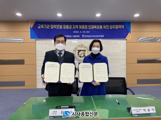 ÇÑÆí, ³ªÁÖ±³À°Áö¿øÃ» ¹ÚÀ±ÀÚ ±³À°ÀåÀº ¡°¿ì¸® °íÀå Á᫐ ±¹¸³´ëÇÐÀÎ Àü³²´ëÇб³ »ç¹ü´ë¿¡¼ ¿ì¼öÇÑ ´ëÇÐ ÀÚ¿øÀÌ ³ªÁÖ ÇлýµéÀÇ ¹Ì·¡¿ª·®À» ¼ºÀåÇÏ´Â µ¥ Å« µµ¿òÀ» µÉ°Å¶ó ±â´ëµÈ´Ù.¡±¸ç Àλ縻À» ÇÏ¿´°í, Àü³²´ëÇб³ »ç¹ü´ë ±èȸ¼ö ÇÐÀåÀº ¡°Áö¿ªÇлýµé°ú ÇÐºÎ¸ð¿¡°Ô Áø·ÎÁøÇаú »ýȰ»ó´ã µî Áö¼Ó¼º ÀÖ´Â ÇÁ·Î±×·¥À» Áö¿øÇϰڴ١±¸ç Àû±Ø Çù·ÂÀ» ¾à¼ÓÇÏ¿´´Ù.