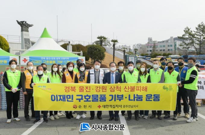 [½Ã»çÁ¾ÇսŹ® = Àå¹Î±Ô ±âÀÚ] ¼øÃµ½Ã(½ÃÀå Çã¼®)´Â °æºÏ ¿ïÁø°ú °¿øµµ »ïô¿¡¼ ¹ß»ýÇÑ ´ëÇü »êºÒ·Î Å« ÇÇÇØ¸¦ ÀÔÀº ÀÌÀç¹ÎÀ» µ½±â À§ÇØ 7ÀϺÎÅÍ ±¸È£¹°Ç° ³ª´®¿îµ¿À» ÃßÁøÇÑ´Ù.