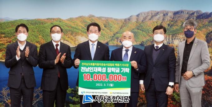 [½Ã»çÁ¾ÇսŹ® = ¿À½ÂÅà ±âÀÚ] Àü¶ó³²µµÈ­¹°ÀÚµ¿Â÷¿î¼Û»ç¾÷Çùȸ(ÀÌ»çÀå ¹éÁ¾±â)°¡ 7ÀÏ (Àç)Àü³²ÀÎÀçÆò»ý±³À°ÁøÈï¿ø¿¡ Àü³² ÀÎÀç À°¼º¿¡ ½á´Þ¶ó¸ç 1õ¸¸ ¿øÀ» ±âŹÇß´Ù.