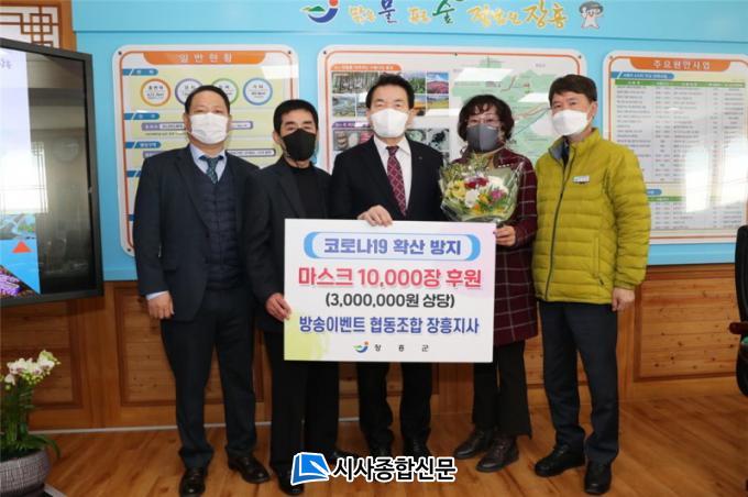 [½Ã»çÁ¾ÇսŹ® = ¿À½ÂÅà ±âÀÚ] ¹æ¼ÛÀ̺¥Æ®Çùµ¿Á¶ÇÕ(ÀÌ»çÀå ¹Ú»óö)Àº 8ÀÏ ÀåÈﱺ¼ö½ÇÀ» ã¾Æ Äڷγª19·Î ÀÎÇØ ¹æ¿ª¿¡ Ãë¾àÇÑ Àú¼Òµæ °¡±¸¿¡ Àü´ÞÇØ ´Þ¶ó¸ç ÀåÈﱺ¿¡ ¸¶½ºÅ© 1¸¸ Àå(300¸¸¿ø »ó´ç)À» ±âºÎÇÏ¿´´Ù.