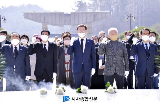 ÇÑÆí, À̿뼷 ½ÃÀåÀº ¡°À̹ø 5¡¤18 42Áֳ⠱â³ä½ÄÀº ´ë¼± ÀÌÈÄ ±¹¹ÎÅëÇÕÀÌ ÃÖ¿ì¼± °úÁ¦°¡ µÈ »óȲ¿¡¼ Ä¡·¯Áö´Â Áö¿ª ù ±¹°¡ ±â³äÇà»çÀÎ ¸¸Å ÆòÈ¿Í ÅëÇÕÀ» ¿°¿øÇÏ´Â ±¤ÁÖÀÇ ¸ñ¼Ò¸®°¡ ±â³ä½Ä°ú ºÎ´ëÇà»ç¿¡ ³ì¾Æµé¾î Àü¼¼°è¿¡ ÆòÈÀÇ ¸Þ½ÃÁö¸¦ ÀüÇÏ°í ±¤ÁÖÁ¤½ÅÀ¸·Î ½Ã¹ÎÀÌ Çϳª µÇ´Â ÀǹÌÀÖ´Â Çà»ç°¡ µÇ¾î¾ß ÇÑ´Ù¡±¸ç ¡°À§´ëÇÑ ¿À¿ù Á¤½Å À§¿¡ ´õ Å©°í ´õ °ÇÑ ±¤Áֽô븦 ¿¾î°¡´Â ±æ¿¡ ÇÔ²² ÇØÁÖ½Ã±æ ¹Ù¶õ´Ù¡±°í ¸»Çß´Ù.