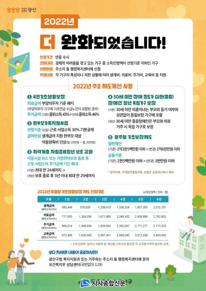 ¡®±îÄ¡°¡ ÀüÇØÁִ ģÀýÇÑ ÆíÁö¡¯¶ó´Â À̸§ÀÇ ¾È³»¹®¿¡´Â ±¹¹Î»ýȰ±âÃʺ¸Àå, ÇѺθ𠰡Á· Áö¿ø »ç¾÷, Ãë¾à°èÃþ ÀÚ¸³Áغñ û³â º¸È£, 30¼¼ ¹Ì¸¸ Àå¾ÖÀΠû³â µ¶¸³°¡±¸ Áö¿ø, ±¤ÁÖÇü ±âÃʺ¸Àå µî ¿ÃÇØ °³¼±µÈ ÁÖ¿ä Á¦µµÀÇ ³»¿ë°ú ¼±Á¤ ±âÁØ µîÀÌ ÀÚ¼¼È÷ ´ã°å´Ù.