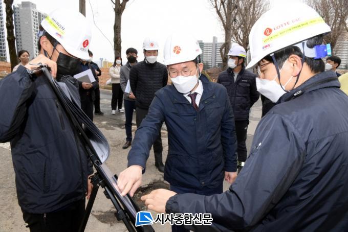 ¹® ºÎ½ÃÀåÀº ¸ÕÀú ³ó¼ºµ¿ ¾ÆÆÄÆ® ½ÅÃà°ø»ç ÇöÀå¿¡¼ ÄÜÅ©¸®Æ® ¾ç»ý µî ÁÖ¿ä °øÁ¤ ÁøÇà»óȲÀ» Á¡°ËÇϰí, °ø»ç °ü°èÀڵ鿡°Ô ½Ã¹æ¼, µµ¸é, ¼³°èµµ¼ Áؼö µî öÀúÇÑ Ç°Áú¡¤½Ã°ø°ü¸®¸¦ ´çºÎÇß´Ù.