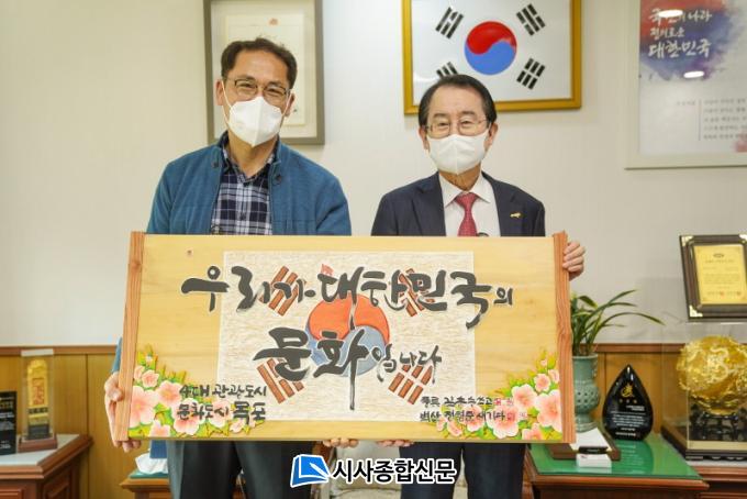 | (»ç)º®»êÀüÅë¼°¢Çùȸ Á¤ÇüÁØ È¸Àå, ¸ñÆ÷½Ã¿¡ ¹®Èµµ½Ã ÁöÁ¤ ±â³ä ÀÛǰ ±âÁõ ¡®¿ì¸®°¡ ´ëÇѹα¹ÀÇ ¹®ÈÀÔ´Ï´Ù¡¯¹®±¸ ´ã±ä ÀüÅë¼°¢ Àü´Þ |