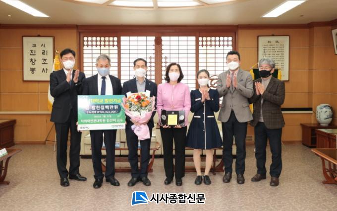 ±è¼±¹Ì ±³¼ö(Ä¡ÀÇÇÐÀü¹®´ëÇпø)´Â 3¿ù 23ÀÏ Á¤¼ºÅà ÃÑÀåÀ» ¸¸³ª ¹ßÀü±â±ÝÀ» Àü´ÞÇÑ µÚ, ¡°´ëÇÐ ½ÃÀý ¾î·Á¿ï ¶§ ÁÖÀ§ÀÇ µµ¿òÀÌ Å« ÈûÀÌ µÆ´Ù¸ç, ÀÌ ±âºÎ±ÝÀÌ °æÁ¦ÀûÀ¸·Î ¾î·Á¿î À¯ÇлýµéÀ» À§ÇØ »ç¿ëµÇ¾úÀ¸¸é ÇÑ´Ù,¡±°í ¸»Çß´Ù. ¶Ç ¡°ÇлýµéÀÌ Àü³²´ëÀÇ µû¶æÇÑ »ç¶ûÀ» ´À²¼À¸¸é ÇÑ´Ù.¡±°í µ¡ºÙ¿´´Ù.