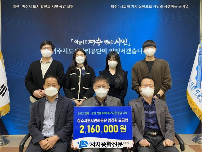 [½Ã»çÁ¾ÇսŹ® = ¿À½ÂÅà ±âÀÚ] ¿©¼ö½Ãµµ½Ã°ü¸®°ø´Ü(ÀÌ»çÀå ±èűÔ)Àº Áö³ 28ÀÏ °æºÏ ¡¤ °¿ø Áö¿ª¿¡¼ ¹ß»ýÇÑ »êºÒÇÇÇØ º¹±¸Áö¿øÀ» À§ÇØ ÀÓÁ÷¿øÀÌ ½Ê½ÃÀϹÝÀ¸·Î ¸ðÀº ¼º±Ý 216¸¸¿øÀ» Àç³±¸È£ ¸ð±Ý Àü¹®±â°üÀÎ ¡®Èñ¸Áºê¸®Áö Àü±¹ÀçÇØ±¸È£Çùȸ¡¯¿¡ Àü´ÞÇß´Ù°í ¹àÇû´Ù.